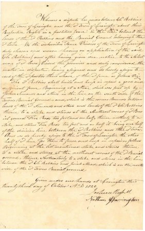 - Report of the Fence Viewers concerning a partition fence between land of Eli Robbins and the town burial ground, October 23, 1820.... View Full Record