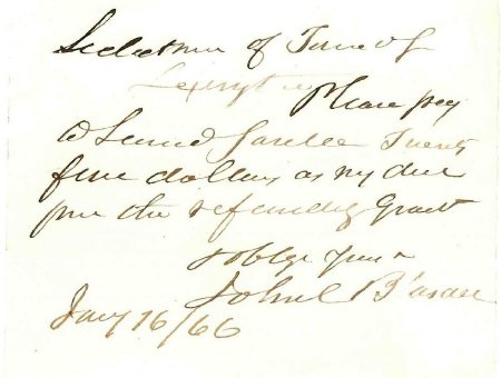 - Receipt, George G. Wheeler paid by the Selectmen, March 26, 1866.