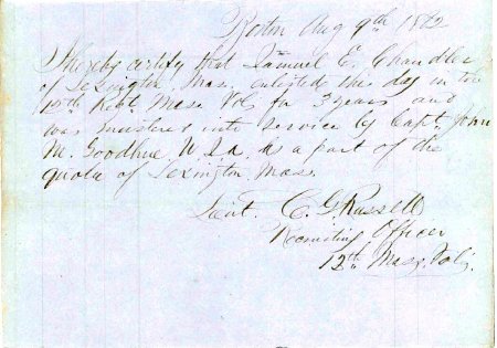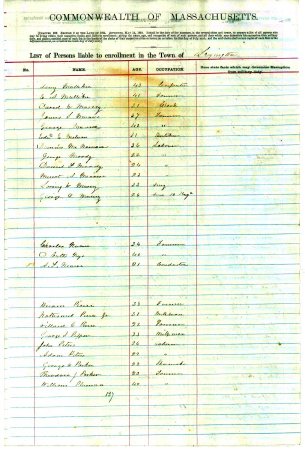 - List of soldiers furnished by the town under the call for nine months men, July 11, 1862... View Full Record
