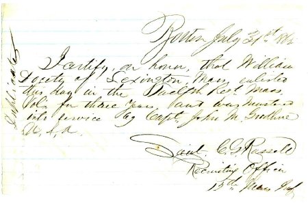 - Certificate of enlistment of Richard Rankin, March 4, 1864