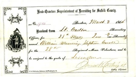 - Certificate of enlistment of William Manning and Stephen Caroll, March 3, 1864
