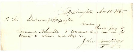 - Order to pay Leonard A. Saville on account of soldiers fund, October 24, 1865